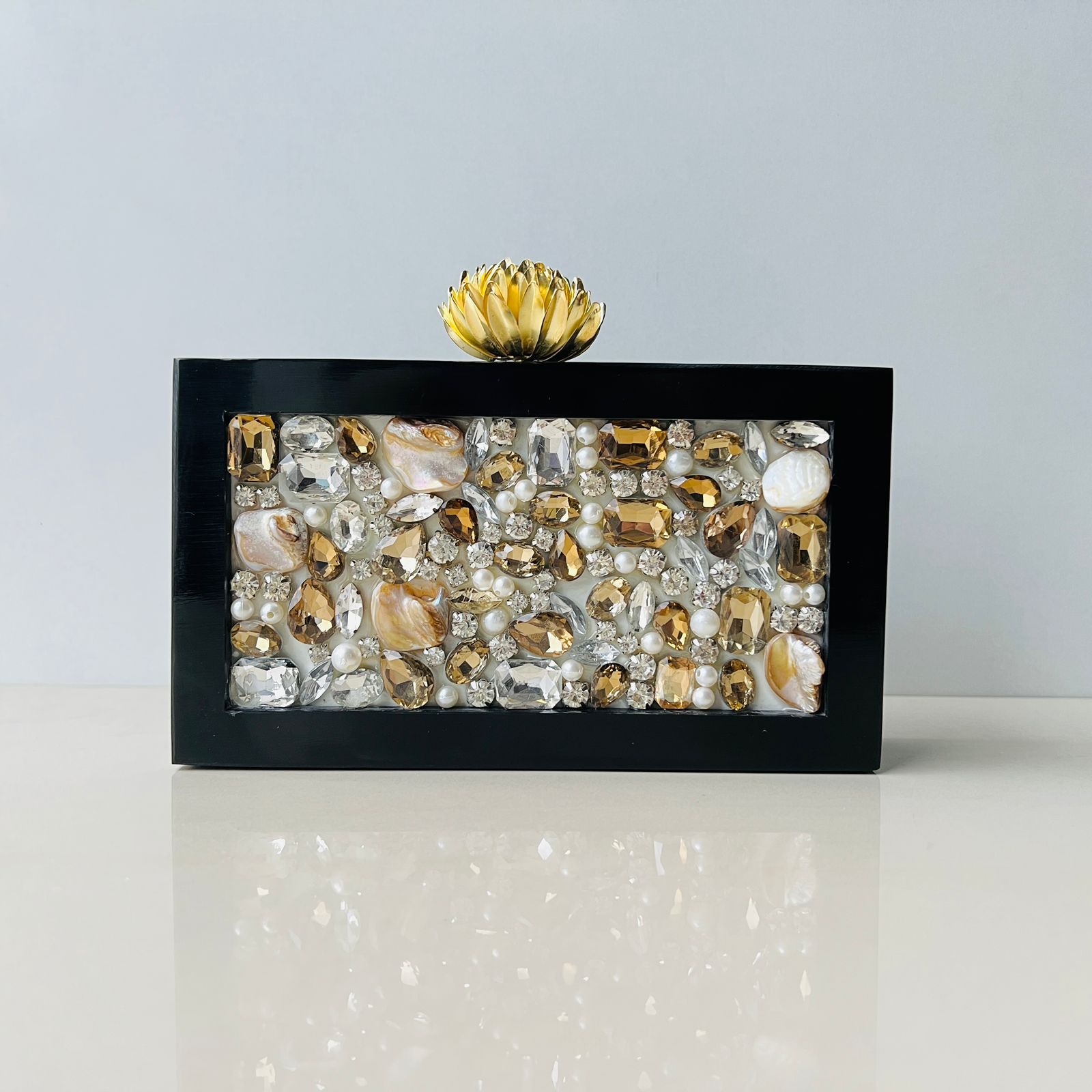 Want to add a personal touch? We offer customization options to make this clutch truly one-of-a-kind. Perfect for a night out or a special occasion, this Resin Clutch with Embellishment is sure to turn heads.